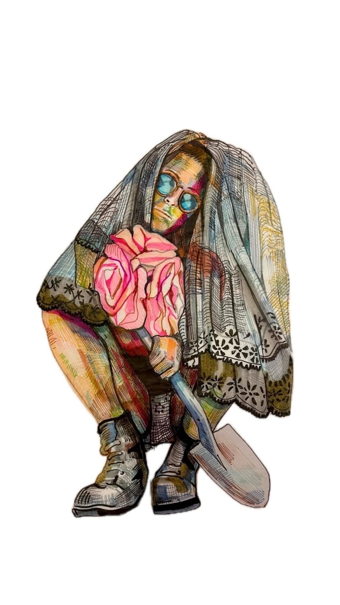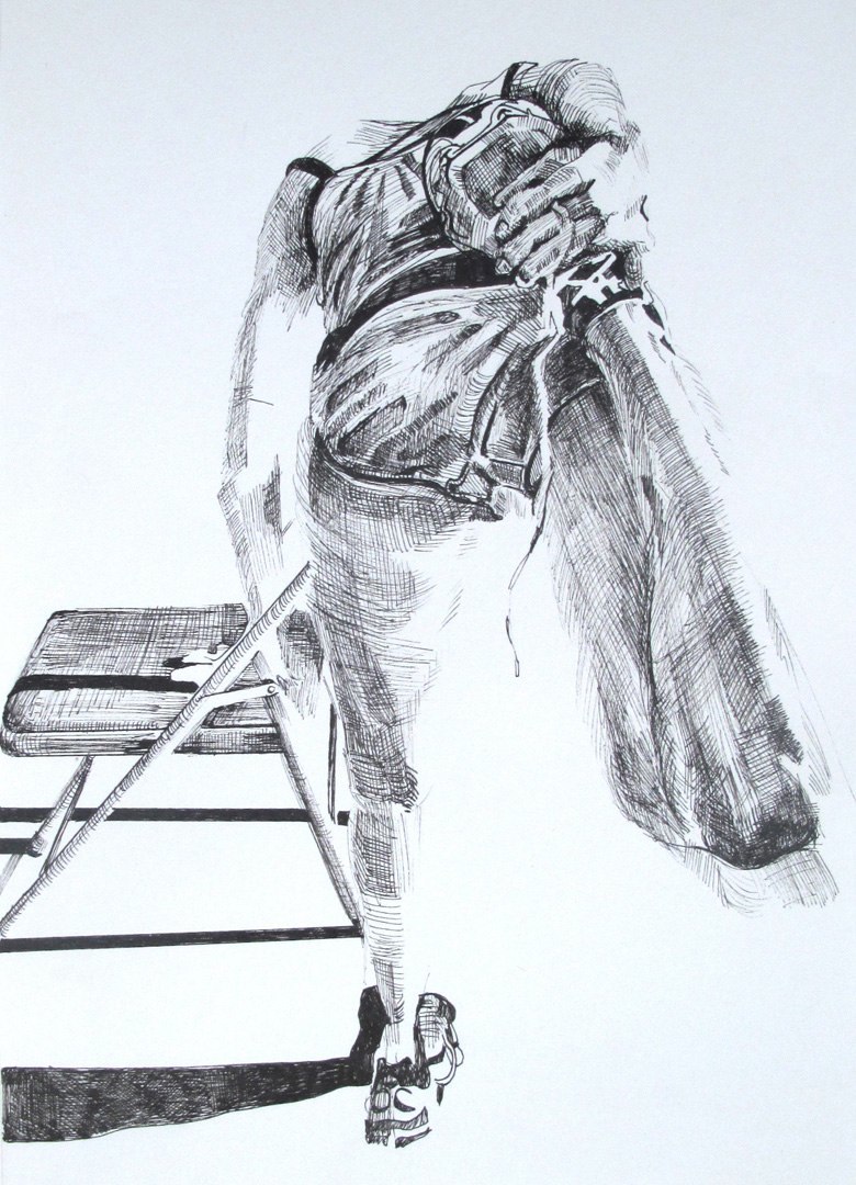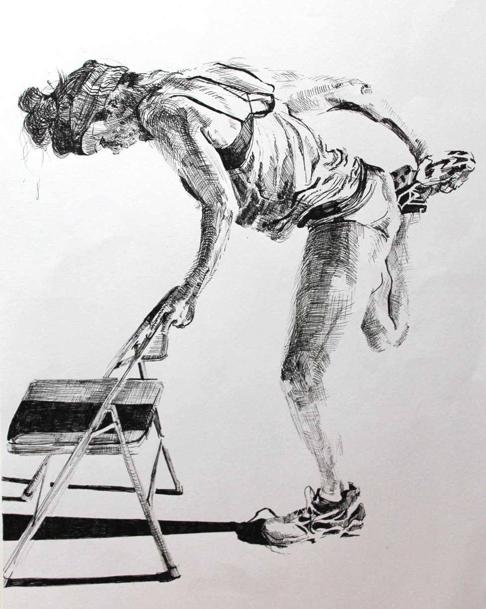 After growing up as a gym rat and falling in love with drawing at an early age, Holly Grimsrud’s work of the past few decades has continued to evolved to include whatever media conveys the idea, be it drawing, painting, mixed media works on paper or cutout wooden sculptures. In her work, Grimsrud explores people, and the ongoing and persistent erosion of privacy in the social media age, often depicting female athletes not in states of competition and glory, but at their most real, raw, private and vulnerable.