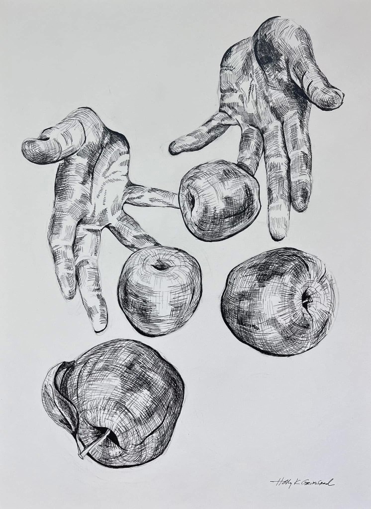 Them Apples, ink on paper, 12″ x 16″