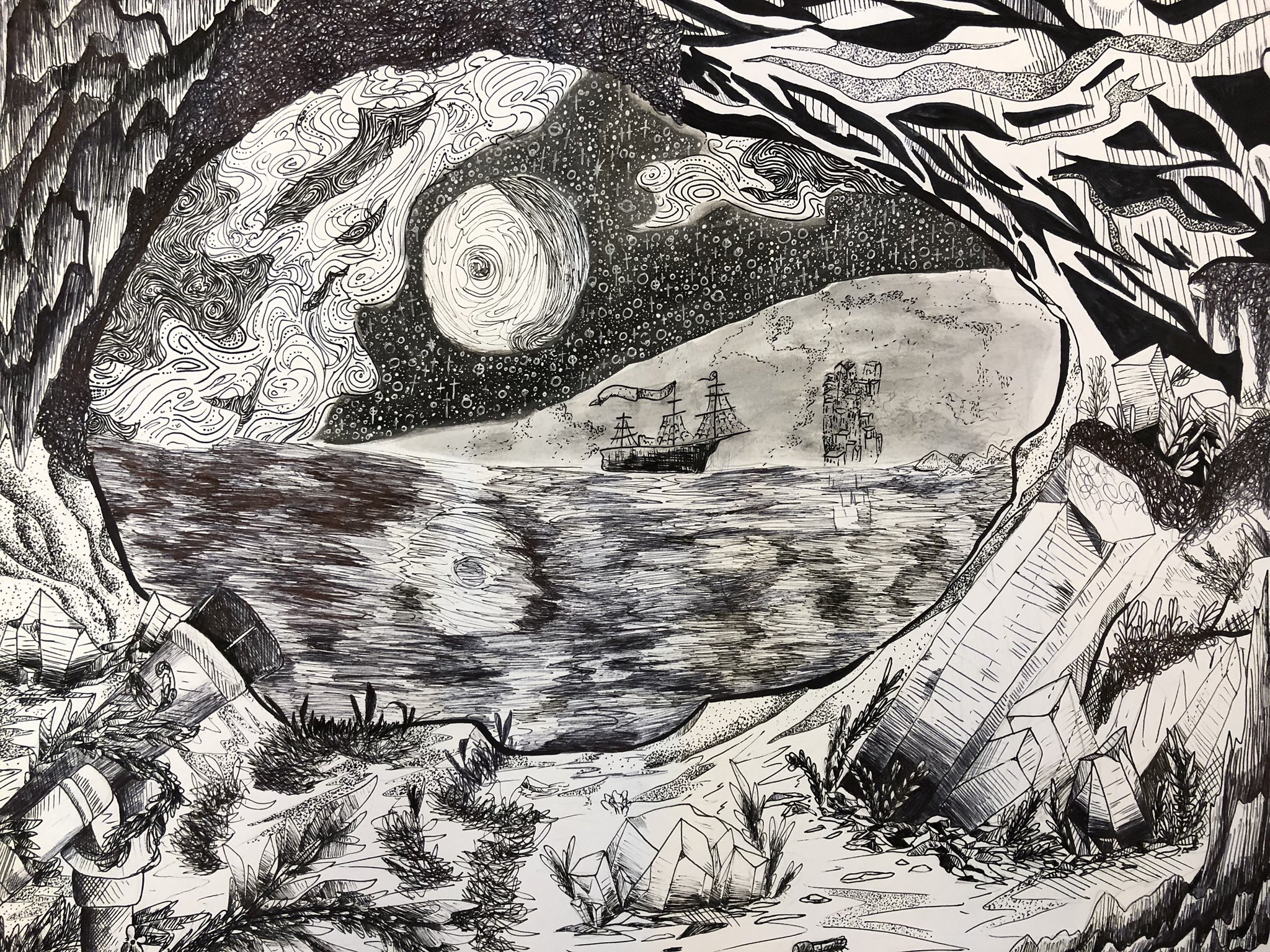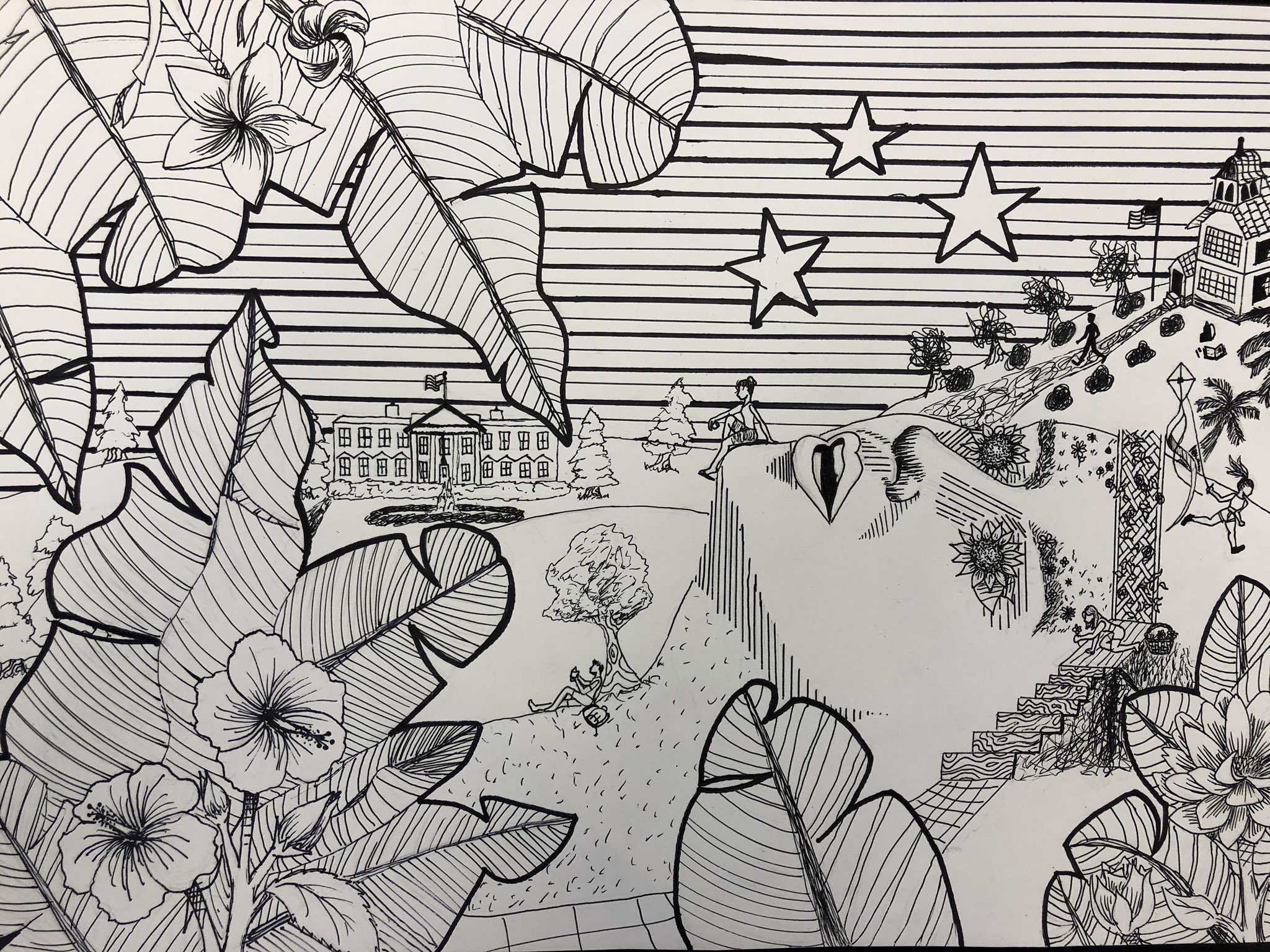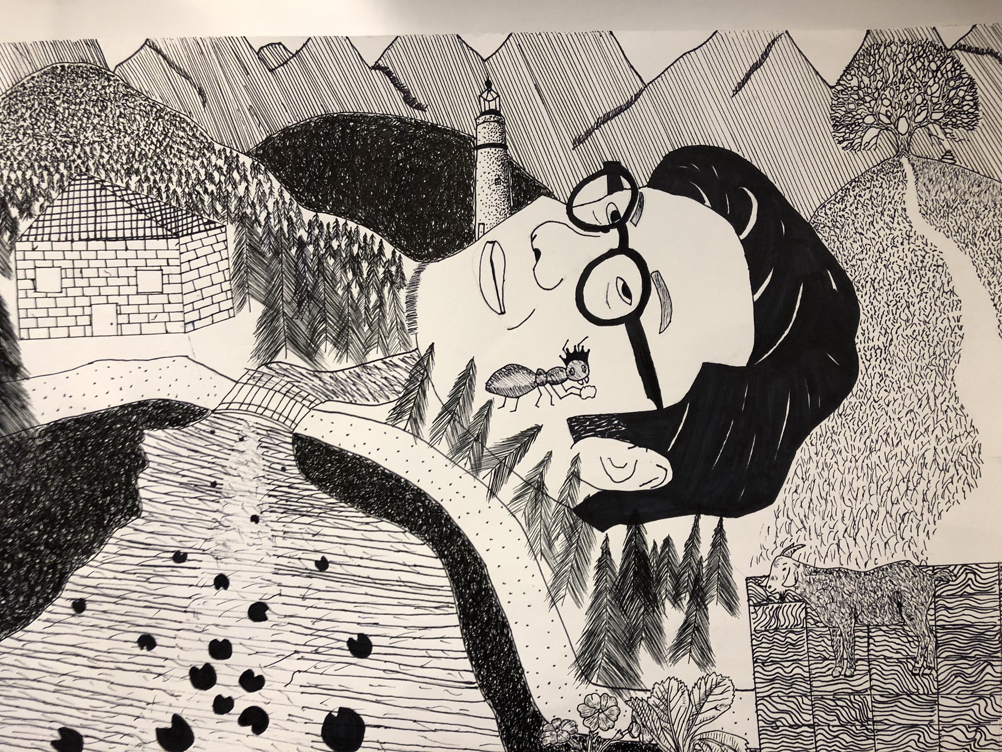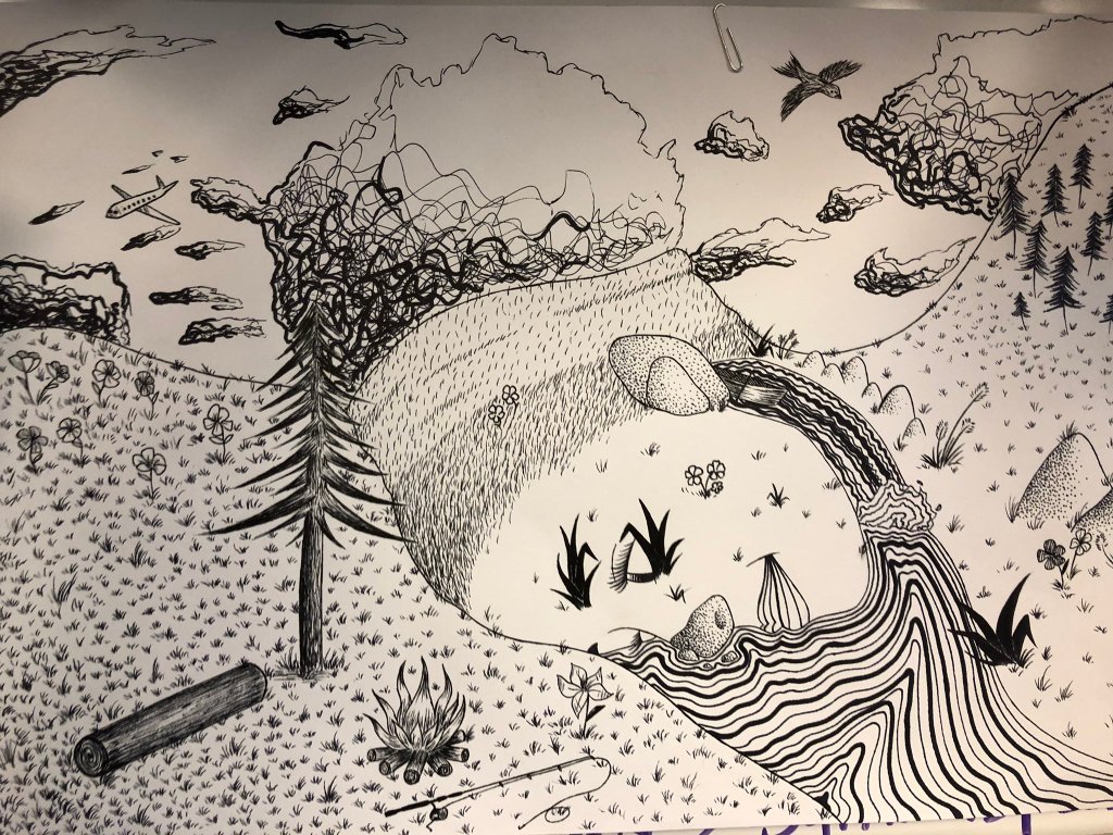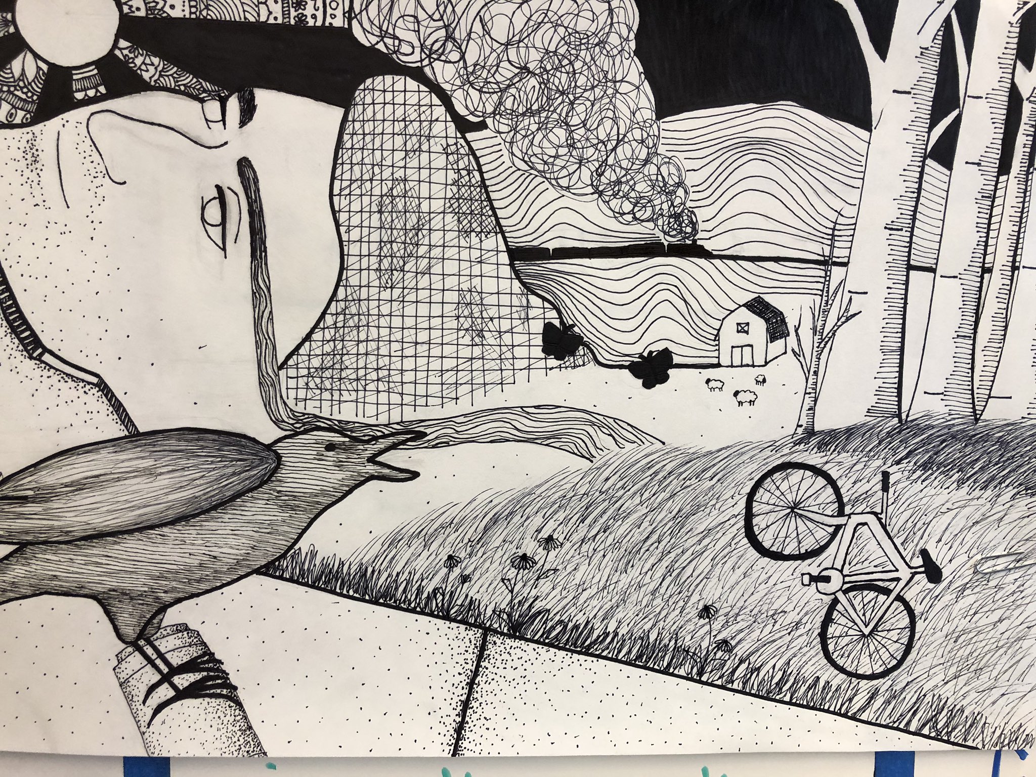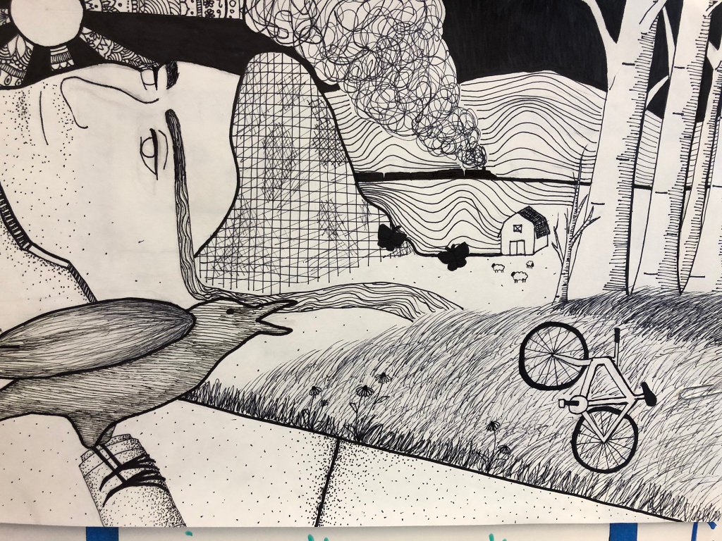 Students looked at examples of anthropomorphic landscapes from the 1500s, and modernized them by choosing one of TIME Magazine’s Most Influential People of 2018. They were tasked to utilized a variety of techniques, show a range of value and juxtapose the portrait into the imaginative landscape of choice.