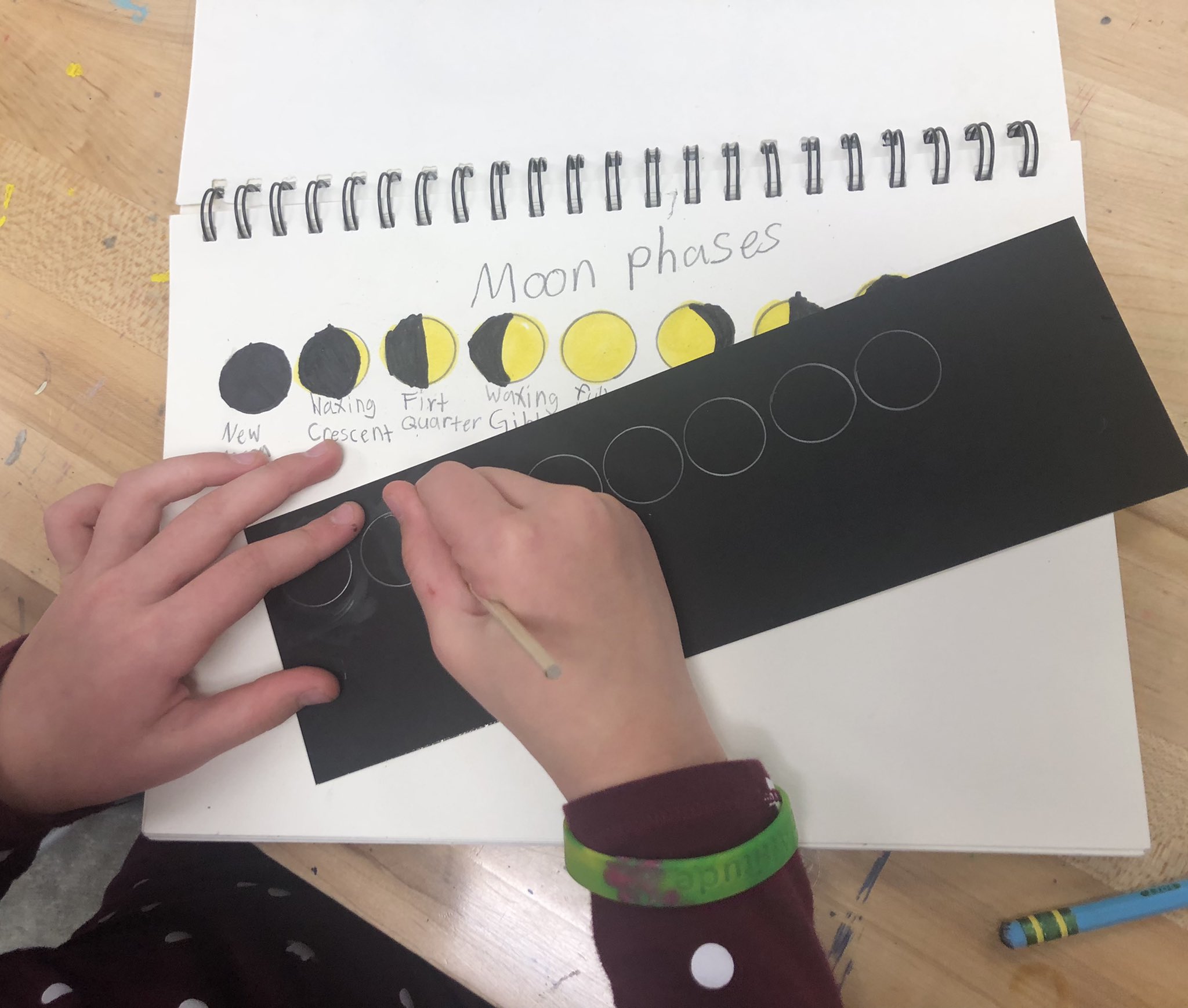 Students investigate how they may demonstrate the phases of the moon using mixed media processes in painting and scratch art materials. Students experiment with pacing and sequence through animation, while engaging in play with materials.