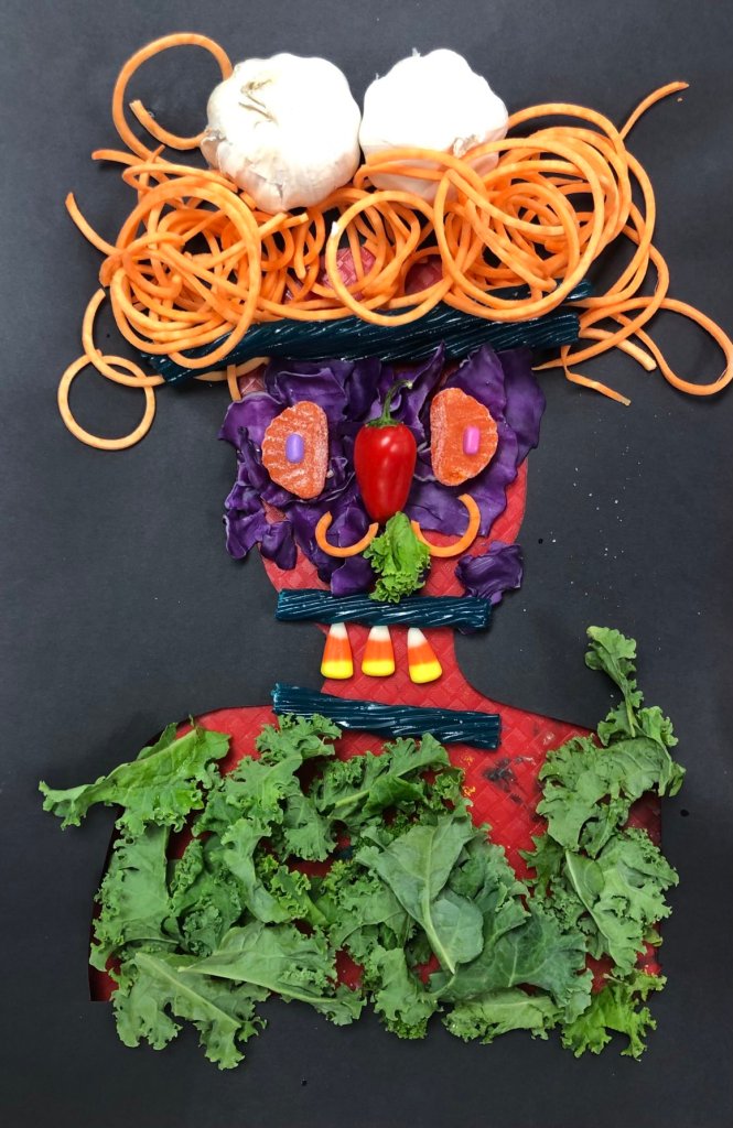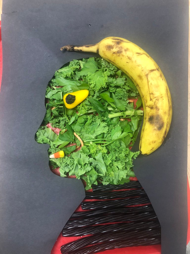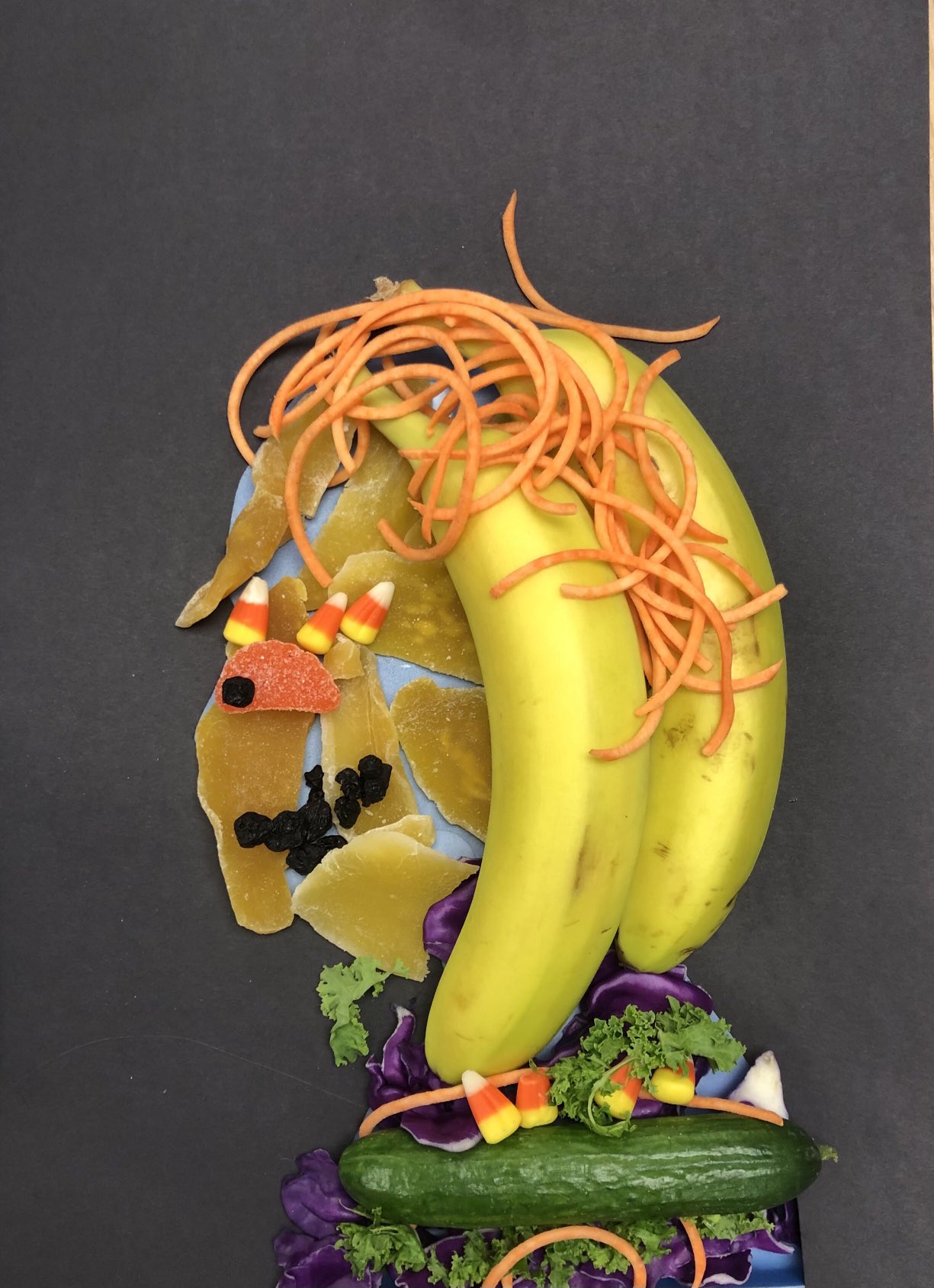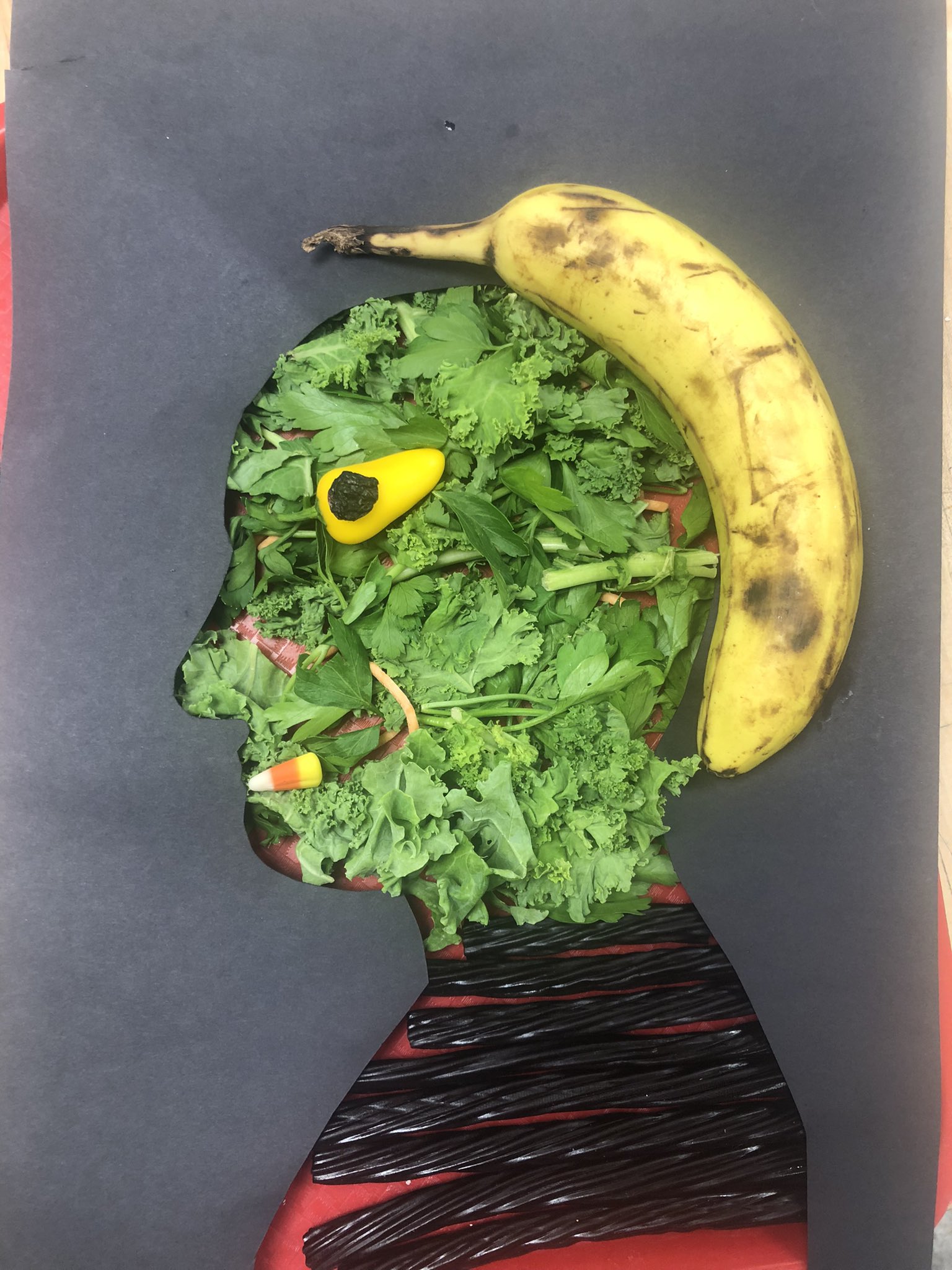 Although Giuseppe Arcimboldo’s portraits were highly imaginative and whimsical, he maintained the proportions of the human body. Before constructing sculptural portraits out of real food, 2nd graders studied the paintings of Arcimboldo, and practiced creating figures in proportion using pic collage’s web image search. When finished, they worked with a partner to sculpt their own portrait heads out of real food.