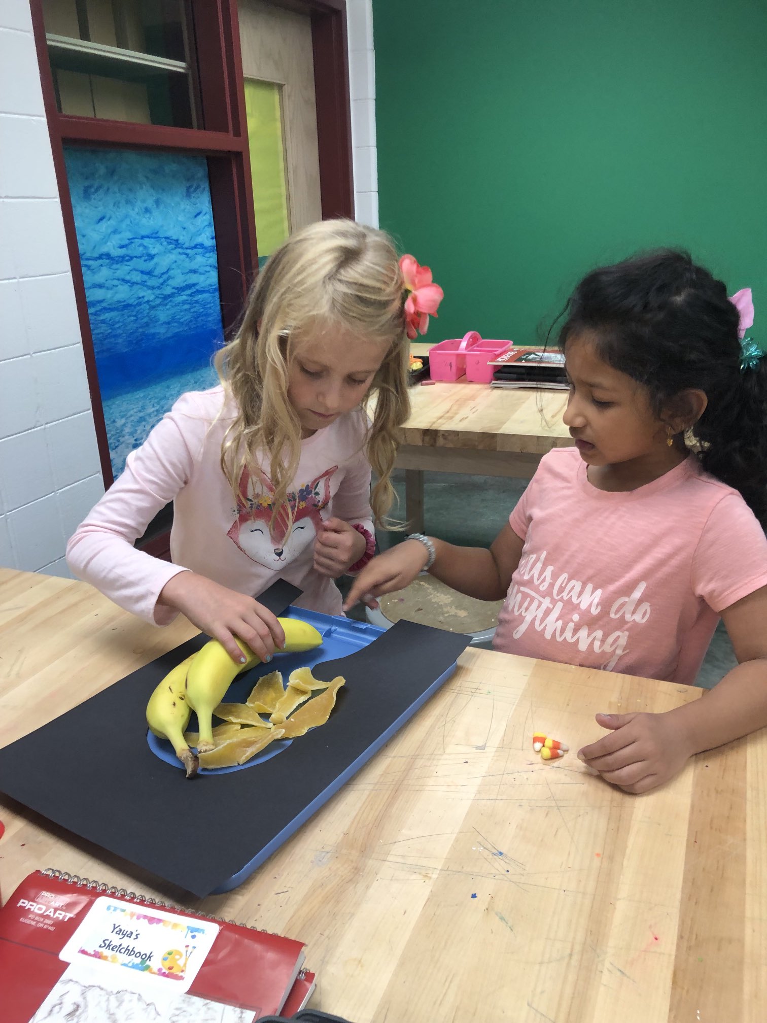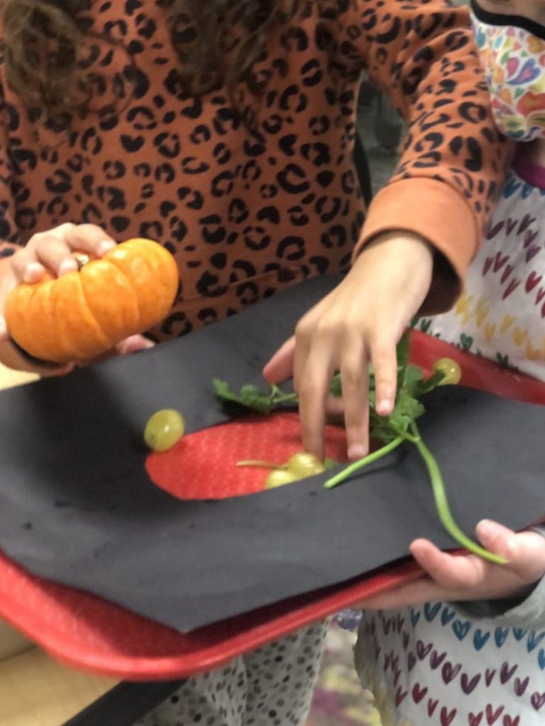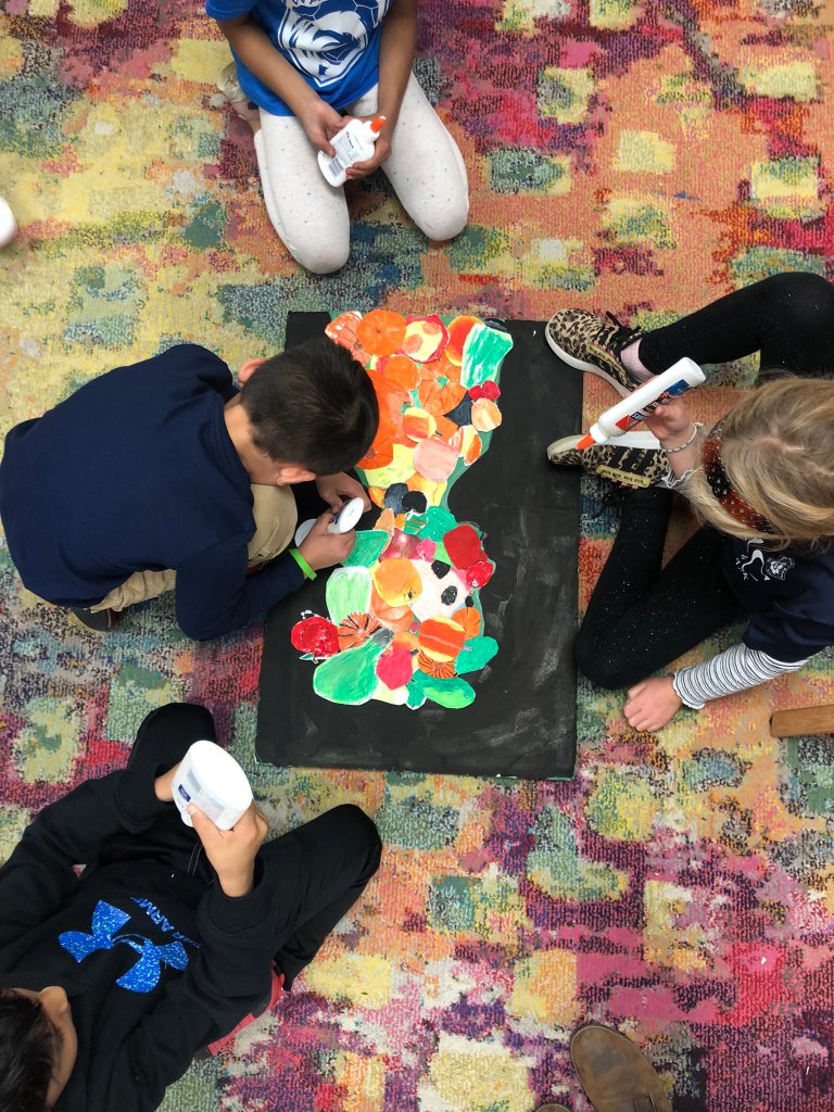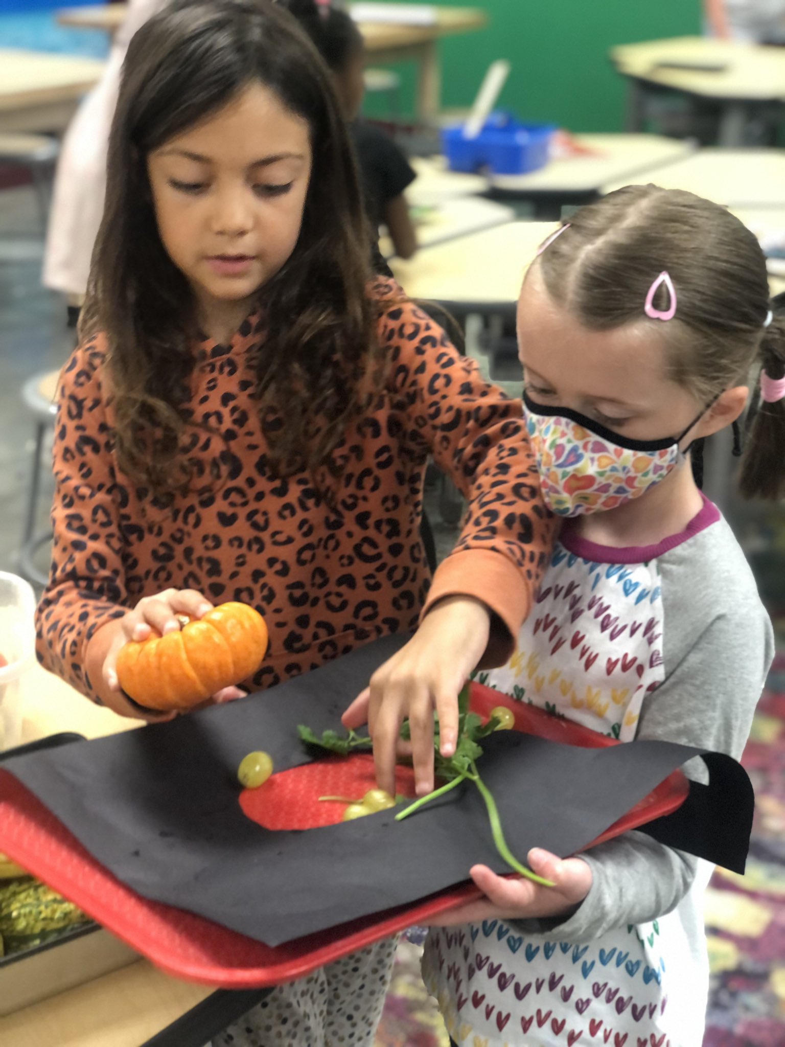 Although Giuseppe Arcimboldo’s portraits were highly imaginative and whimsical, he maintained the proportions of the human body. Before constructing sculptural portraits out of real food, 2nd graders studied the paintings of Arcimboldo, and practiced creating figures in proportion using pic collage’s web image search. When finished, they worked with a partner to sculpt their own portrait heads out of real food.